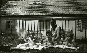 יעל שגיא וילדי הפעוטון על הדשא ליד בית התנוקות-ניב בצלאל,אילה ח ןאמיר קייזר-1977