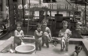 בבריכה בפעוטון ,מיכל אורן ,גלית בן מאיר ,הדס אהוביה ,מירב גבריאל ונרי פרג ,1962