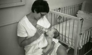 פעוטות. בלהה עפרוני מטפלת בפעוטון-1966