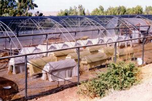 עובדי משק חי מימין מיכה רודד- נעם ענתבי- טלי יוחנן- משמאל בן אהוביה. 2002