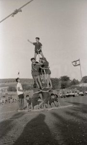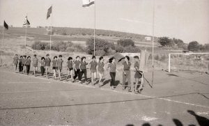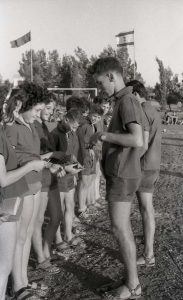 כיתת כפירים במפקד כניסה לחטיבה. מקבלים פנקס חבר. המדריך שרגא גופר-שרה פרידמן-מיכל אילת-דובי שושני-שאול נאמן. 1960