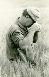 דוד שושני ליד מכונת הזריעה של הבצלצלים 1970