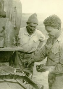 צבי צצקס ומאיר כרמי בזמן עבודת החריש בנגב 1951