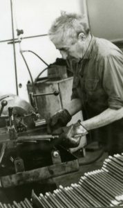 חרושת מתכת. ישראל גוטמן מפעיל מכונת הברגה -1982 .