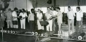 חרושת מתכת : משלחת מדרום אפריקה. חגי בן גוריון מסביר על ייצור חלקי הקטפות -1981