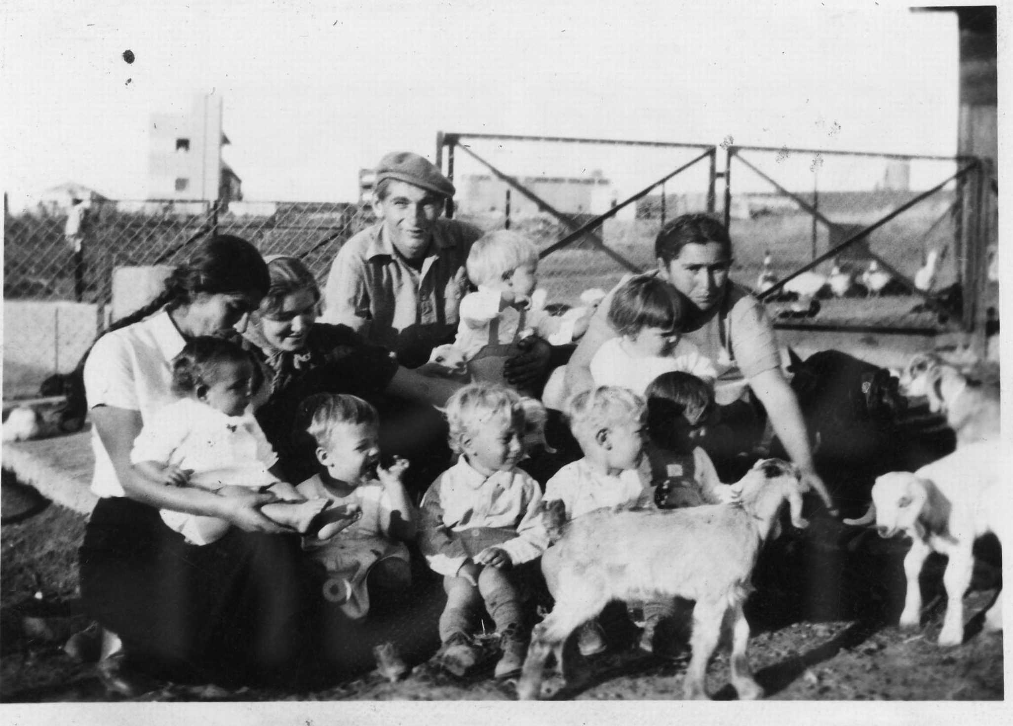 ביקור ילדים בדיר- אליהו א’ עם קסקט- אמנון אמצעי בין הילדים.- 1938