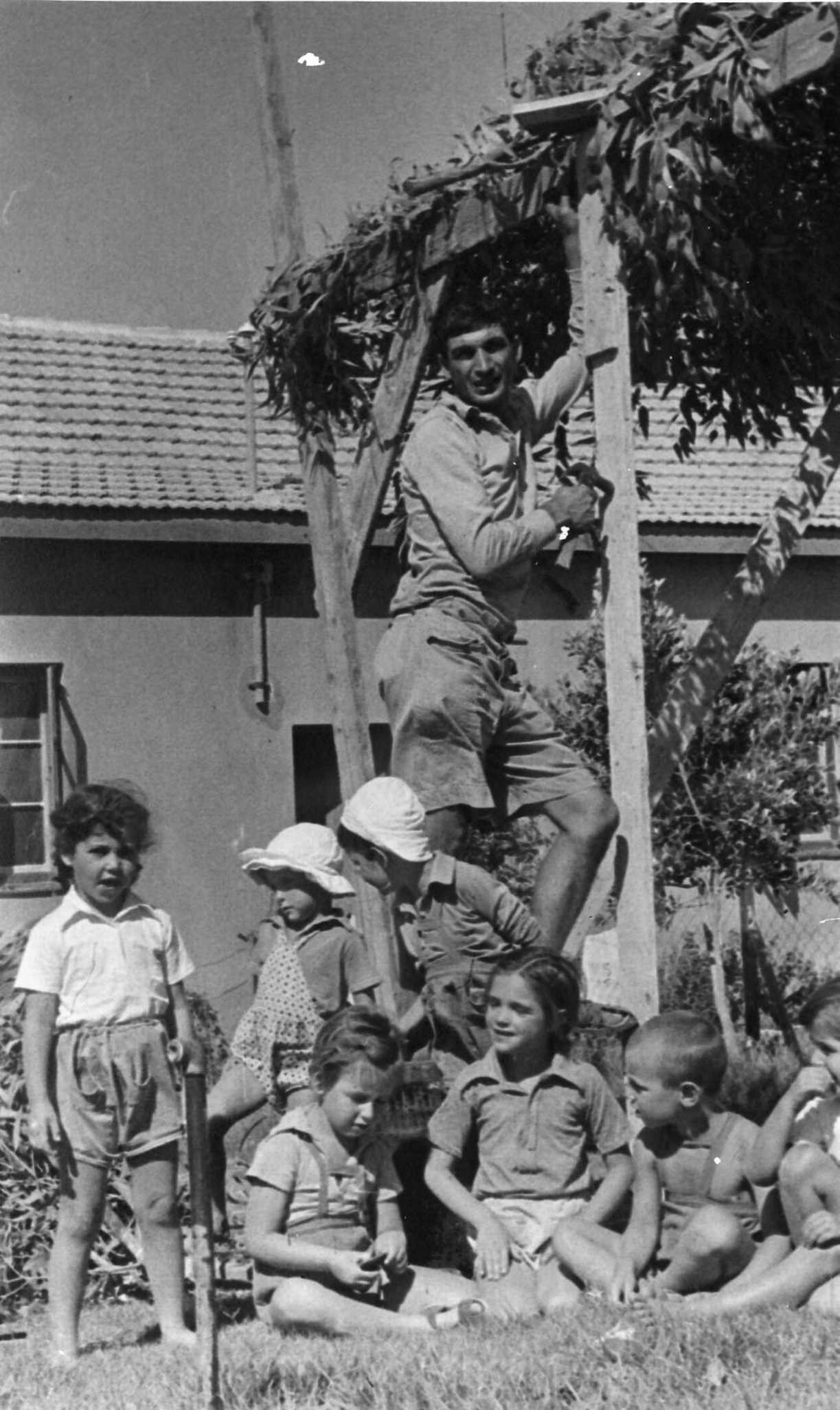 אלינקה בונה עם ילדים סוכה דרורה ארייך- שולה ישראלי- זמרה- עובד בארי ליד גן ב’- 1940