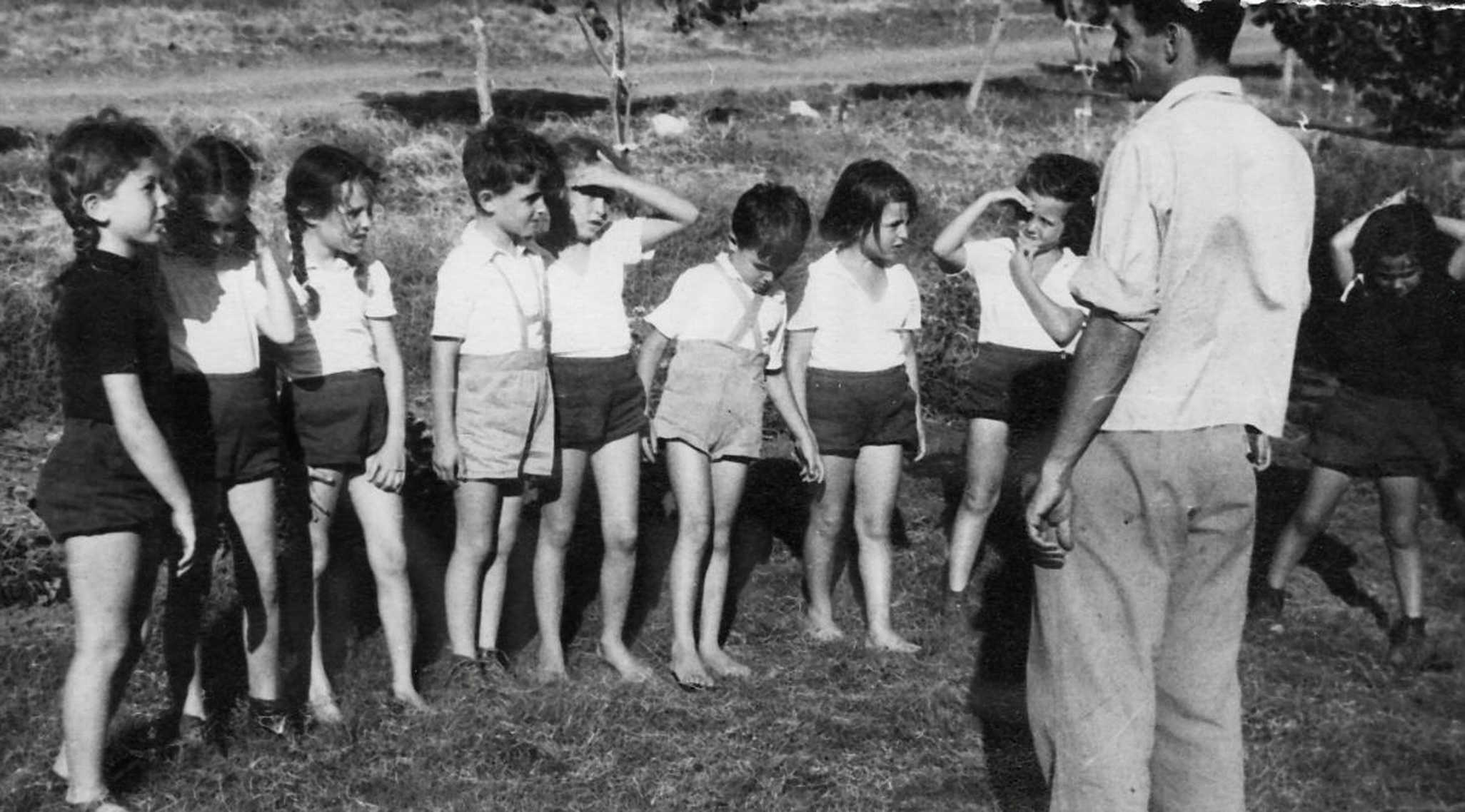 בית ספר אלינקה עם ילדי כיתת ‘אלון’ ו’אורן’ . ראשונה משמאל ניצה שושני-שלישית תמר גדרון 1943