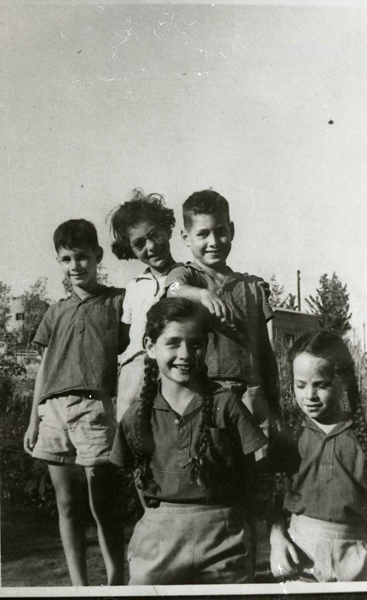 כיתת ‘דרור’ נעה הרמן- רות שריג- משה גל- חוה לורש- עמרם יחיאלי- לפני הפילוג – 1949