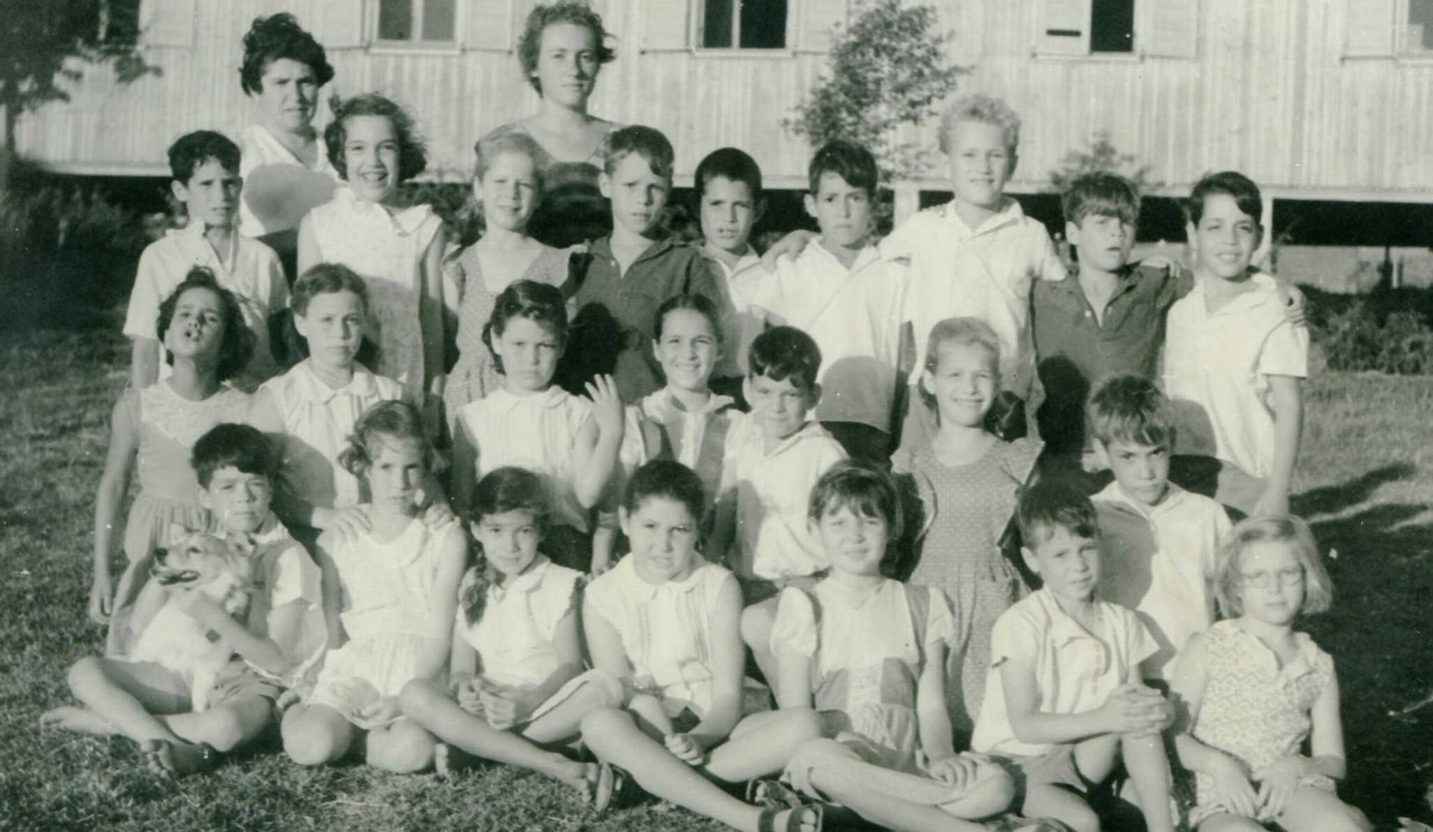 כיתת ‘כפירים’ עם זיוה ארנון ושרקה כהן- מימין עומדים גידי שרון- שאול נאמן- אבישי גלבע- משה שחורי- יריב רודד- יעקב הדר- בתיה המאירי- עירית קורן-מוטי כוכבא. יושבים מימין- יהושוע מנור- יעל סבירסקי- אלי ביקלס- מיכל אילת- דגנית קרליץ- נורית מיזלס- דפנה לוי- שורה תחתונה מימין עדנה המאירי- דובי שושני- – שרה פרידמן- פני צ’ונג-שרה אדר ומיכאל אבנור 1957