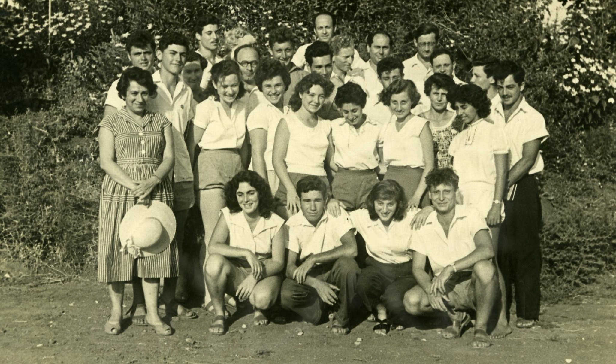 כיתת להבה עם שרה סקורניק המחנכת – המורים בנימין גלעד-עזריה אלון- קותי- אברהם הקש- מנחם אורן ורינה ירחי.ציפורה מאירי מטפלת. עומדים מימין נחמן- אורי- בנימין- עזריה- קותי ליזר אברהם- מנחם- אמיר ראובן -רחל טלה- רינה- ברכה דגני- לאה שחר אהוד ארמן-עפרה שושני- שולה חלפון- גליה פריברג – שרה. כורעים אפרים- שרקה קציר- נתן ועדנה – 1954