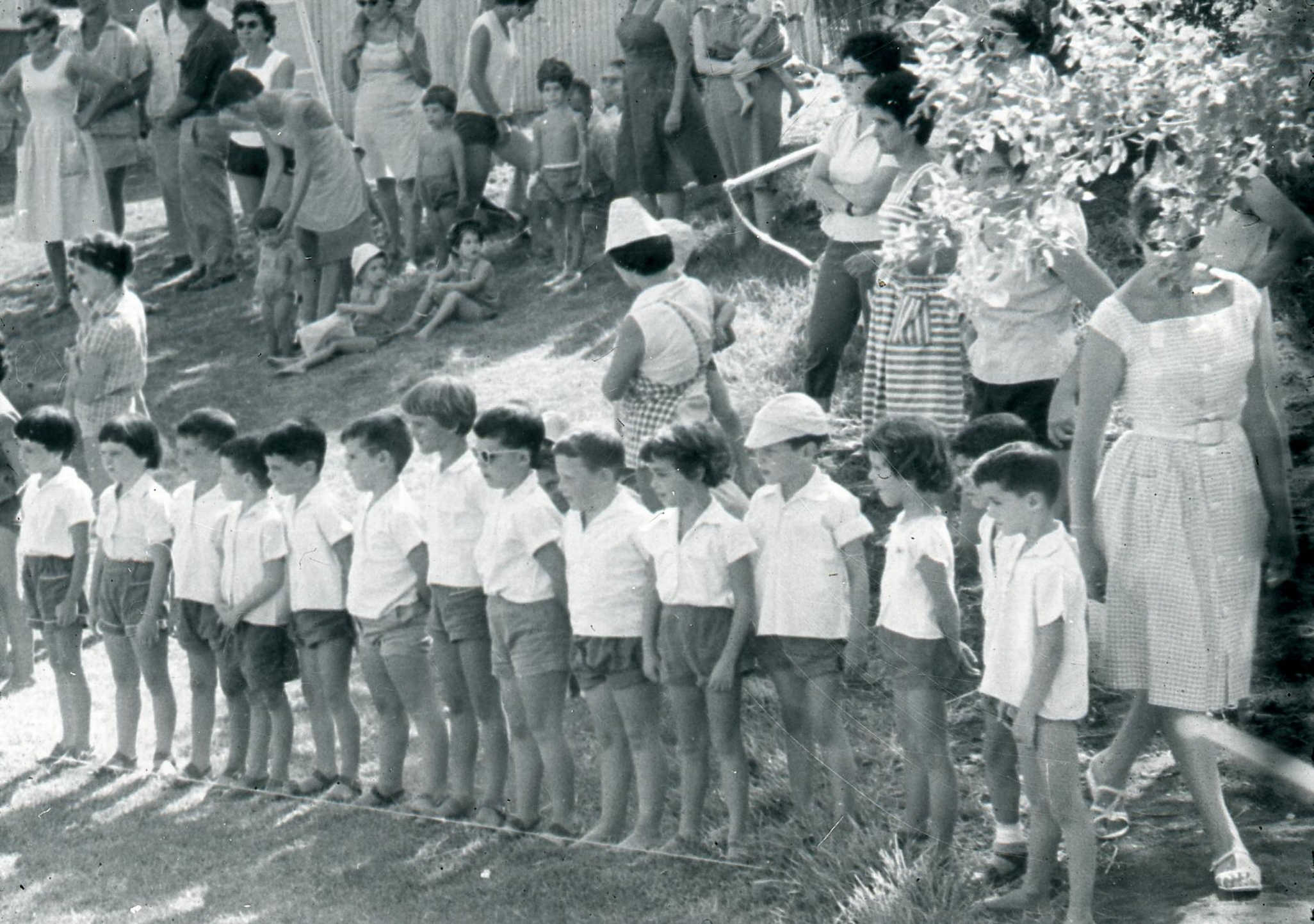 מפקד פתיחת שנת לימודים- כיתת שביט- ענת דגן-אורית הרפז-אלון מייזלס-רעיה מיינרט- פלג טל-דודי כרמל-תומי כוכבא – 1960