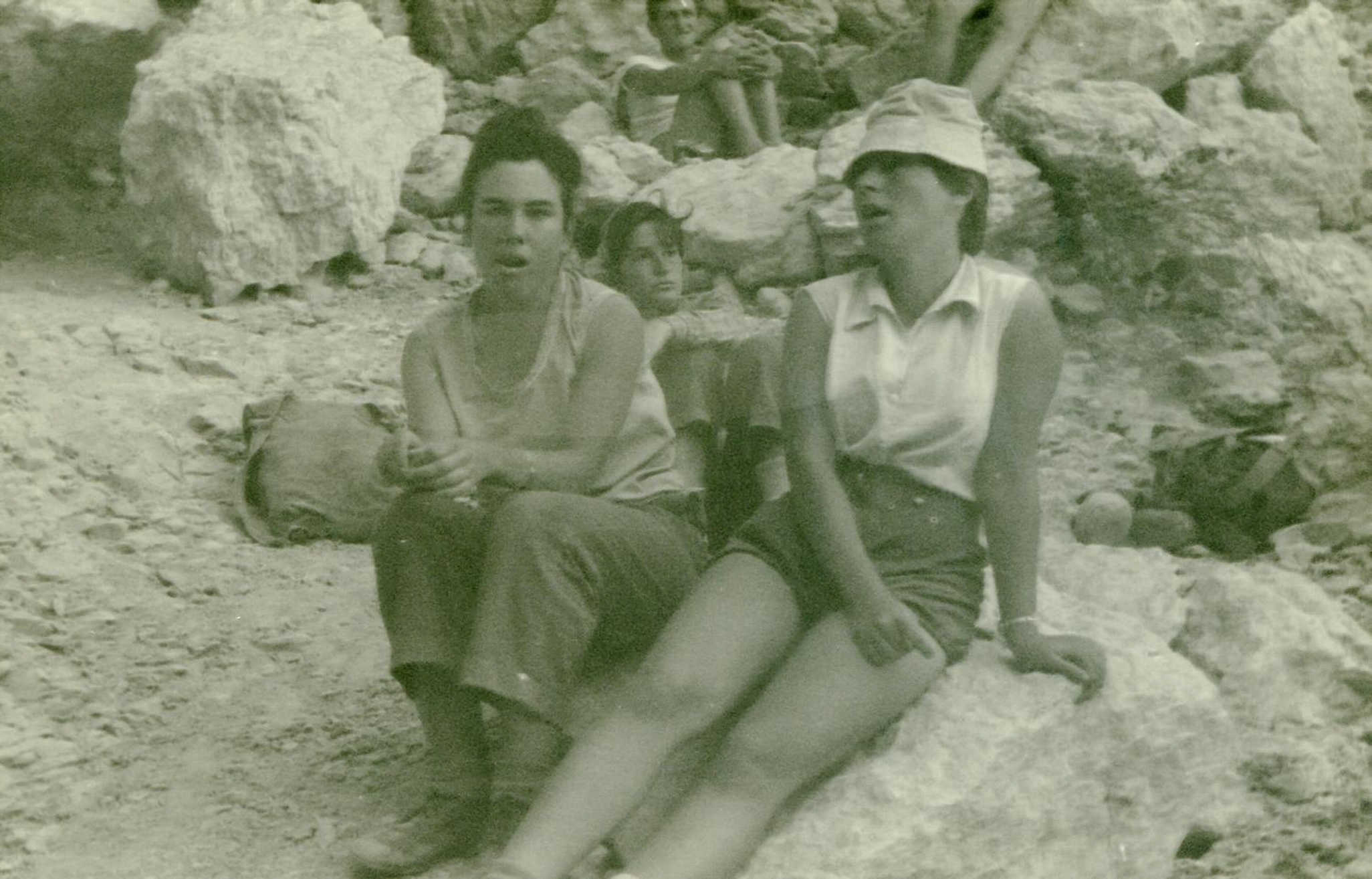 כיתת ‘יחדיו’ בטיול לאילת-עירית אריך ורבקה פריברג-דורית צמרת מאחור – 1960