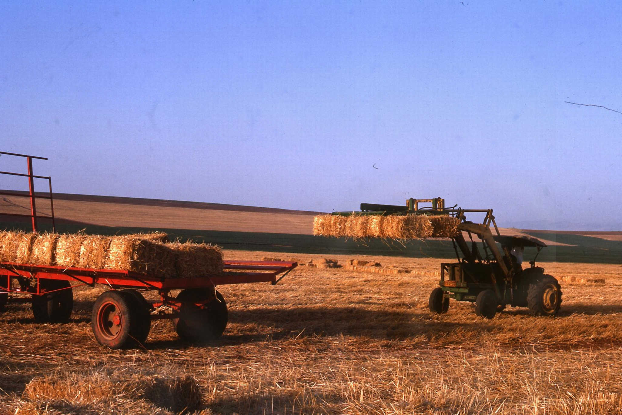 העמסת חבילות קש בשדה על עגלה 1965