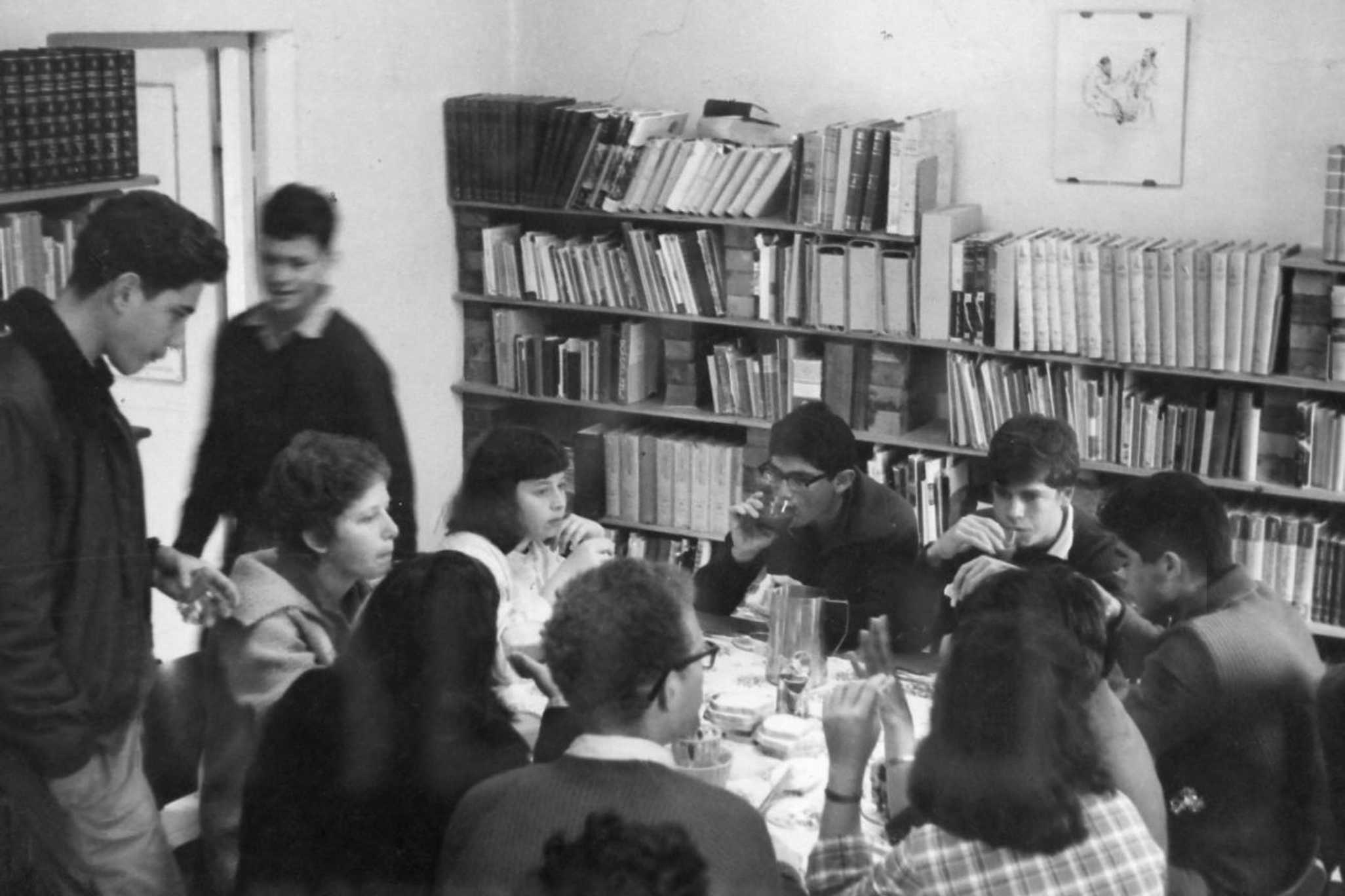 יום “עצמיות’ בחדר ‘המורים’ מכיתת ‘כפירים’ ,שאול נאמן- מיכאל אבנור- נורית מיזלס- בתיה המאירי- אלי ביקלס- יהושוע מנור- ועוד – 1965