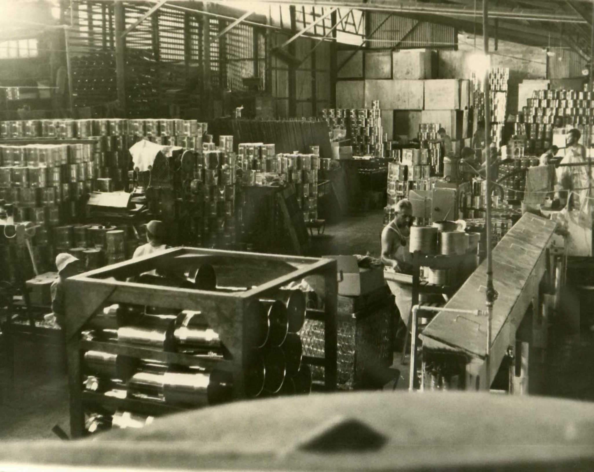 בזיתיה .דוד שלזינגר באולם הייצור- אריזת 9 ליטר 1965