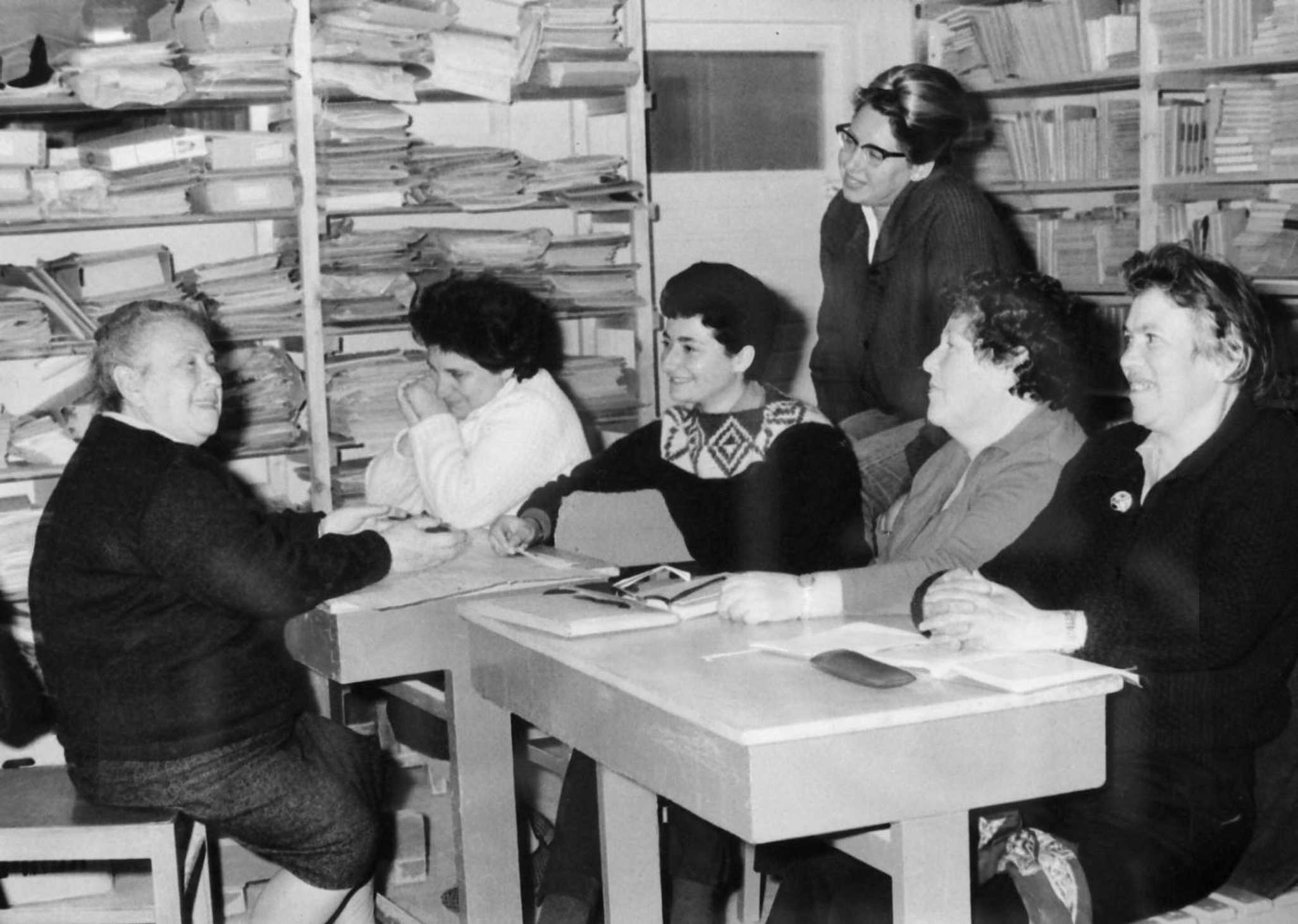 גיזה שור מלמדת עברית את יהודית ריבנר- מרים גוטמן- שרה אלגרנטי ,חנה וולץ ולילאן רודד – 1966