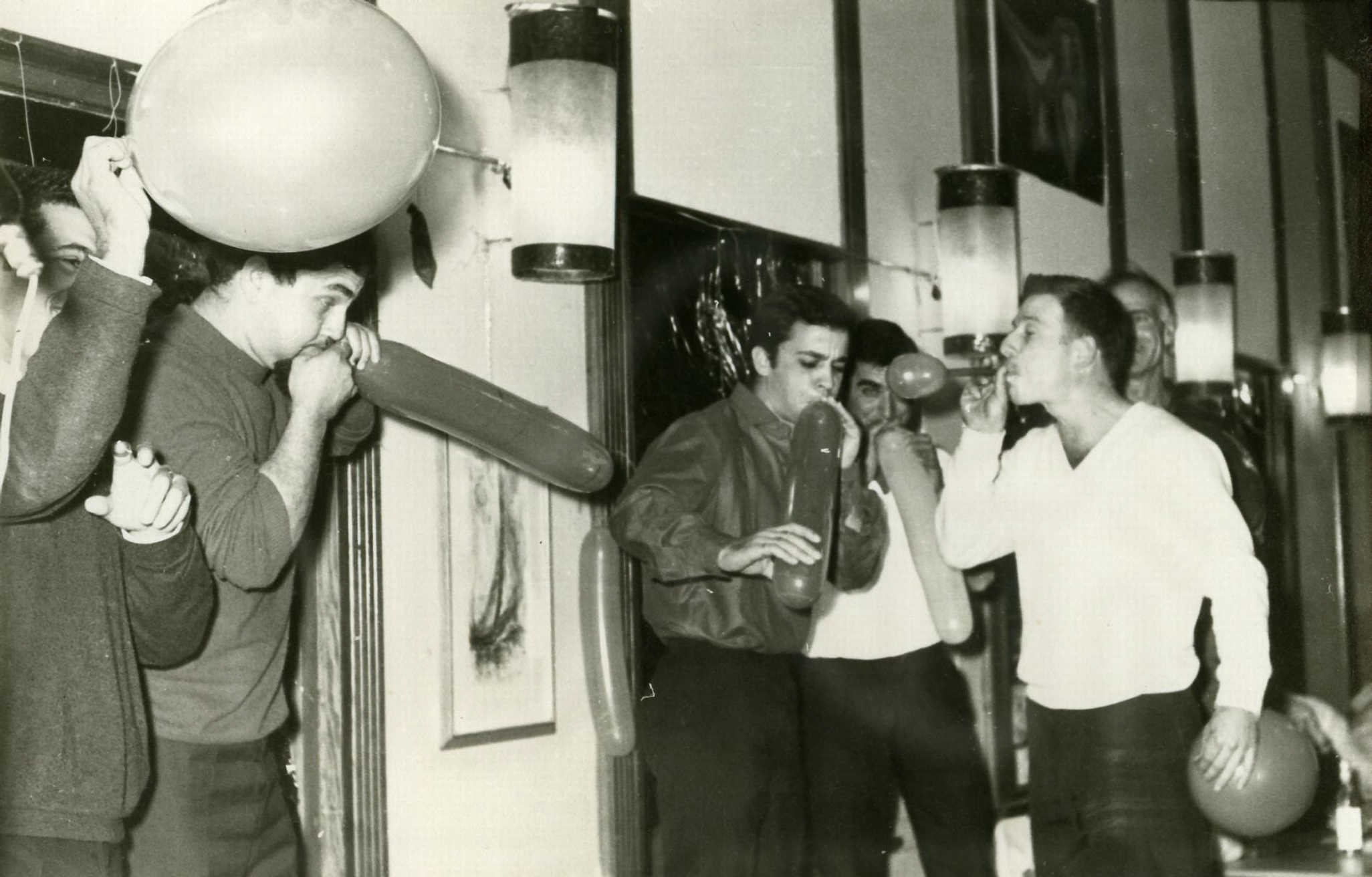 חנוכה תחרות ניפוח בלונים- יעקב דואק- יורם הינמן עודד מרוז-1966