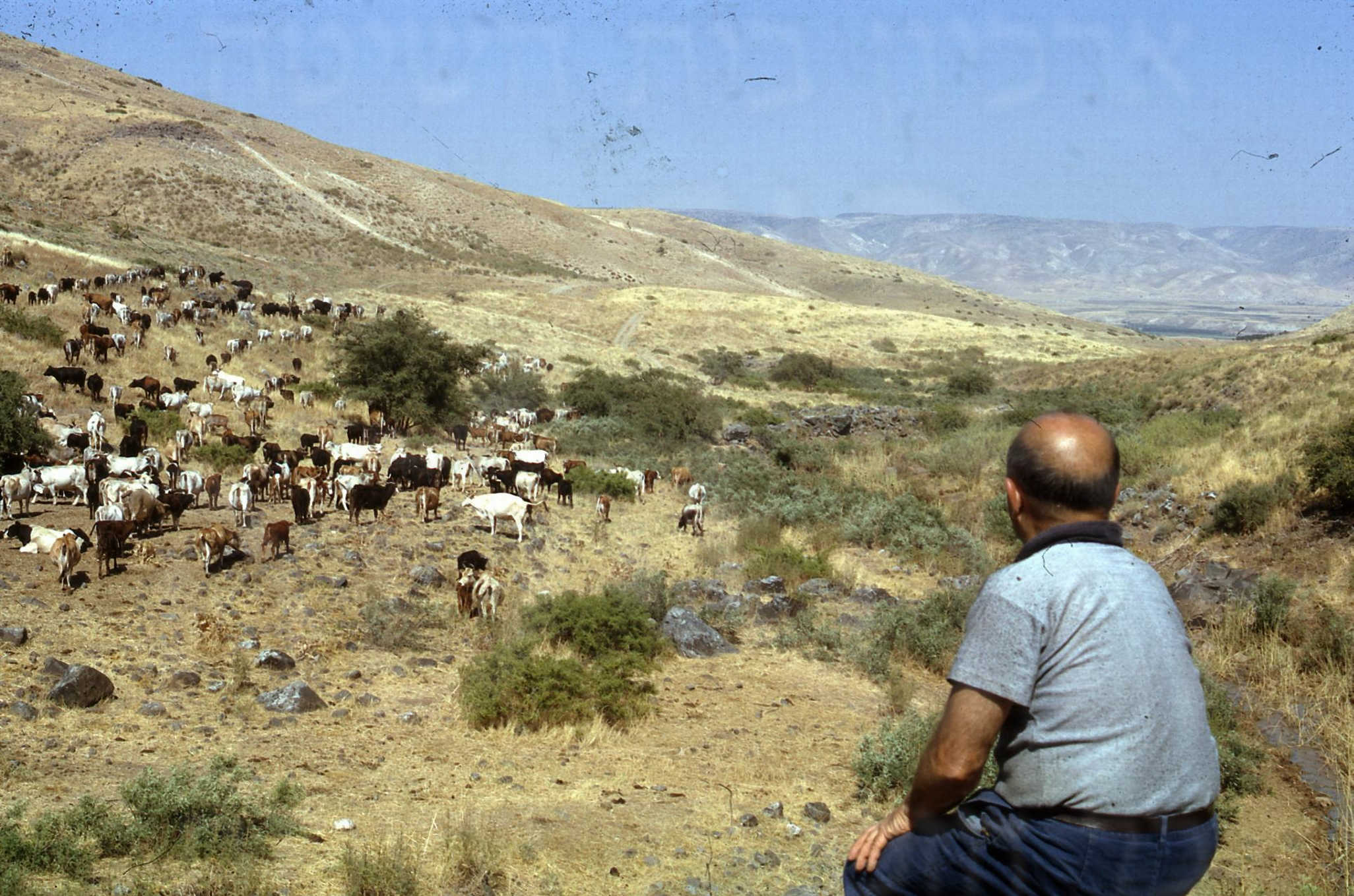 צבי מלר בוחן את עדר הבקר בואדי עישה 1967