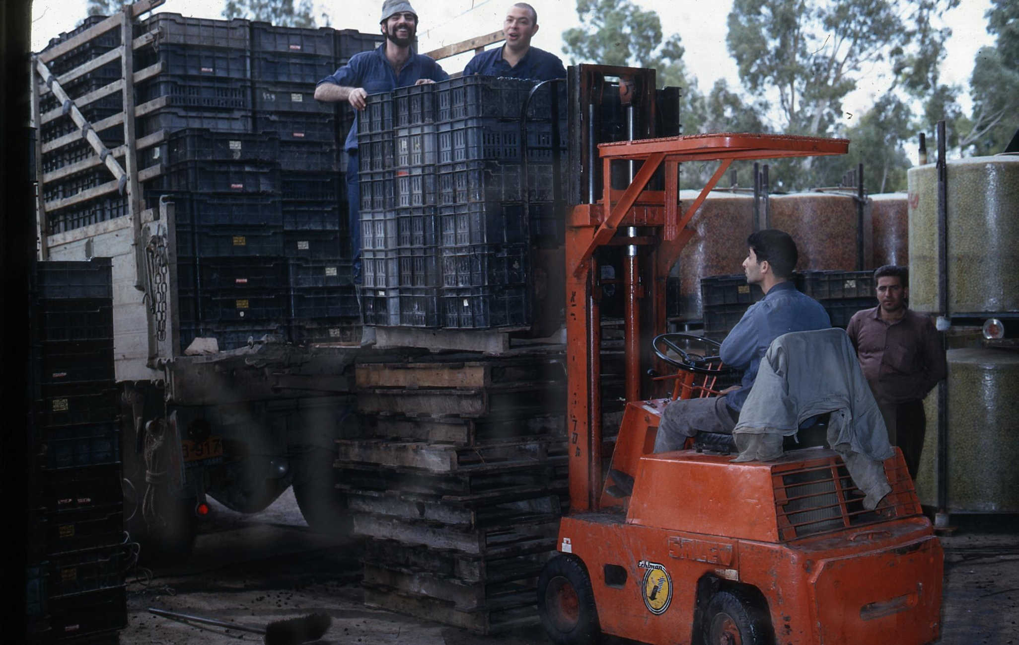 זיתיה.העמסת ארגזים בכניסה למפעל . זיתים הגיעו למפעל בארגזים. 1968