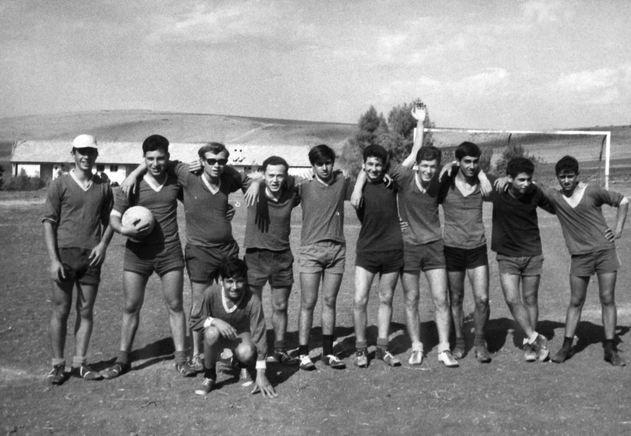 אליפות הבתים בכדורגל על מגרש הספורט ליד שכונת אגם: מימין ניסים דואק- הילל- שלמה פרדי- שלמה גלר- חיים לדצקי, ארי לינברג, שמעון שובל ובני שולמי- 1969