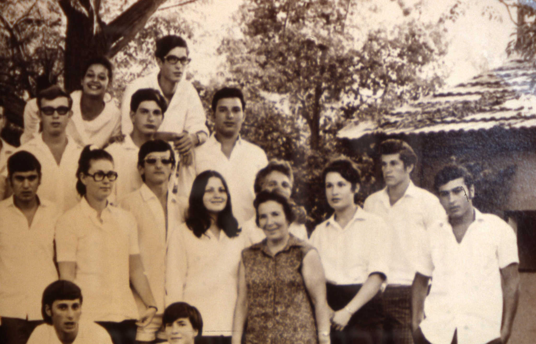 כיתת ‘רימון’ סיום יב- יהודה אורבך– צביה פלד- רגינה ארייך שורי מיינרט- ציפי בלכר- אברהם קיטשבסקי- יוכבד שונרי- אדמונד שבת- אלון אילת- שמעון הרשקוביץ- חמדה חתוקה- צחקי שריג- יוני גל- בני שולמי- -1970″