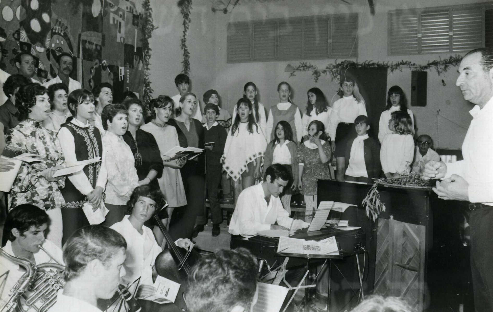 פסח בבית התרבות- ארנסט מנצח על המקהלה והתזמורת,על הפסנתר יוסף שריג-1970