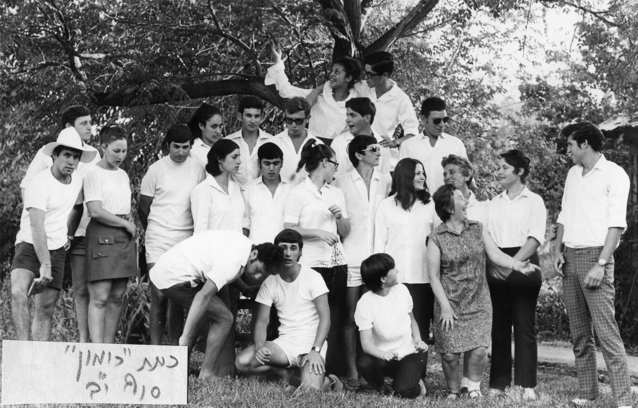 כיתת ‘רימון’ סוף יב- מימין יהודה אורבך- צביה פלד- שורי מינרט- רגינה ארייך-ציפורה בלכר-אברהם קיטשבסקי- יוכבד שונרי- אדמונד- גליה ויצמן- רותי מיזלס- רני קלימן- בני שולמי- יצחק שריג- שמעון הרשקו- חיים לדצקי- עידית טלמור- חמדה חתוכה- יוני גל – יושבים ורדה שרף אלון אילת- 1970