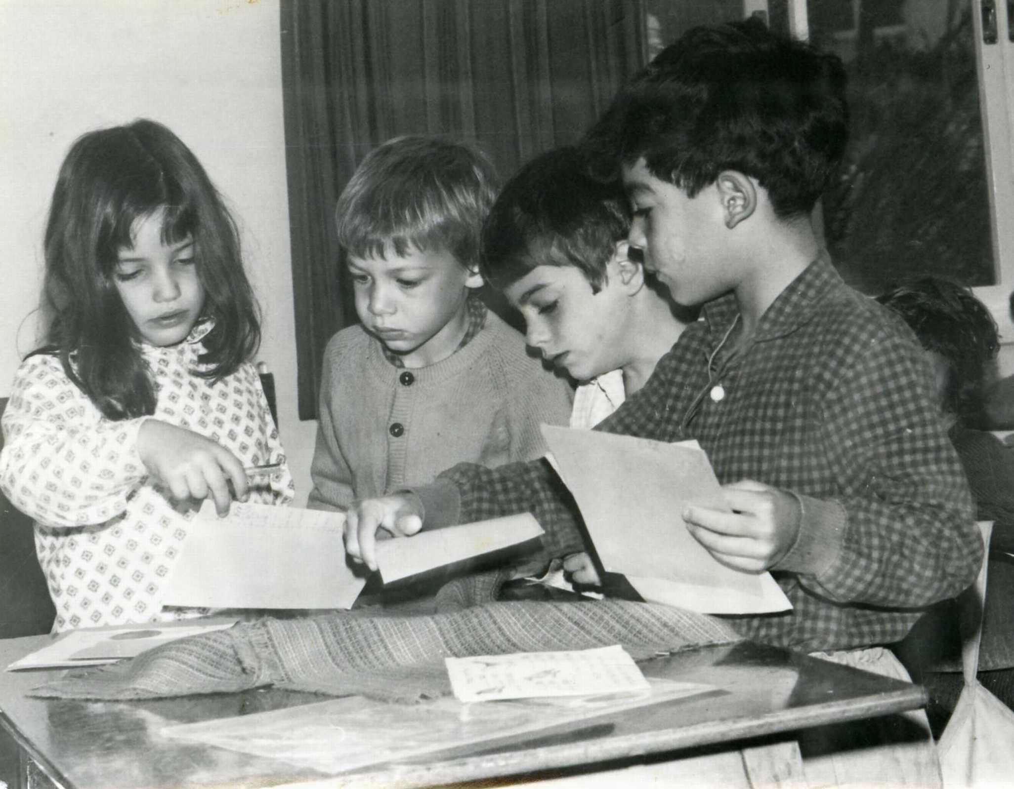 בית הספר בכיתת ‘שקד’ כתה ב’ אילון קליחובסקי ומאיה רימון- חברי בית השטה .עם חן בניאן וארז ריניץ – 1972