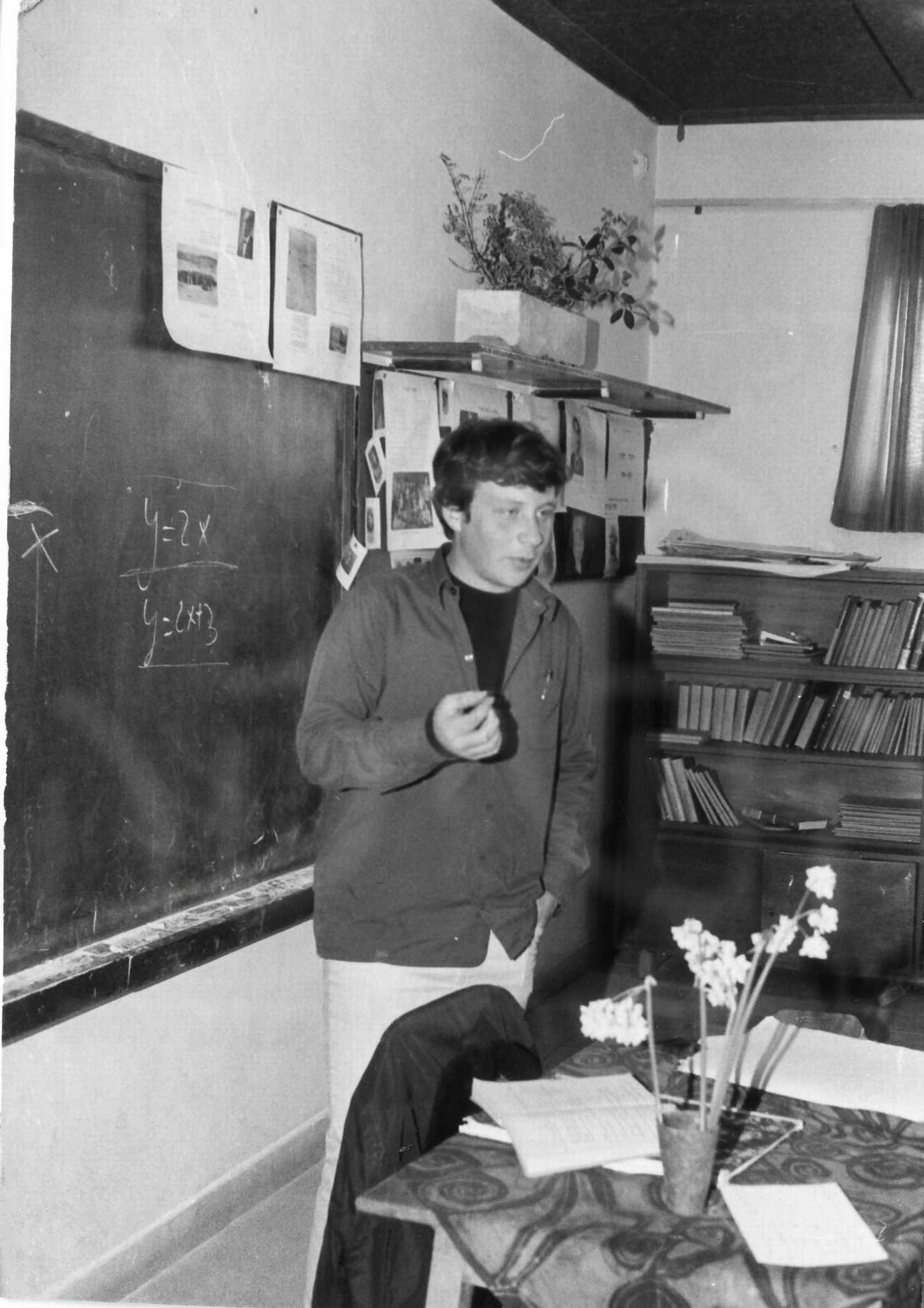 יום עצמיות “המורה” אלון מיזלס מלמד בכיתה חשבון. 1972
