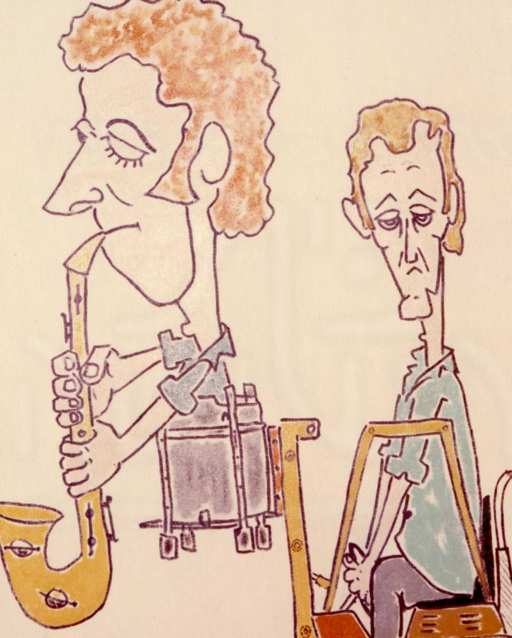 ציור של מוני על קיר הזיתיה- יעקב שולמי וחנוך אלבלק עובדי הזיתיה חברי בית השטה. 1974