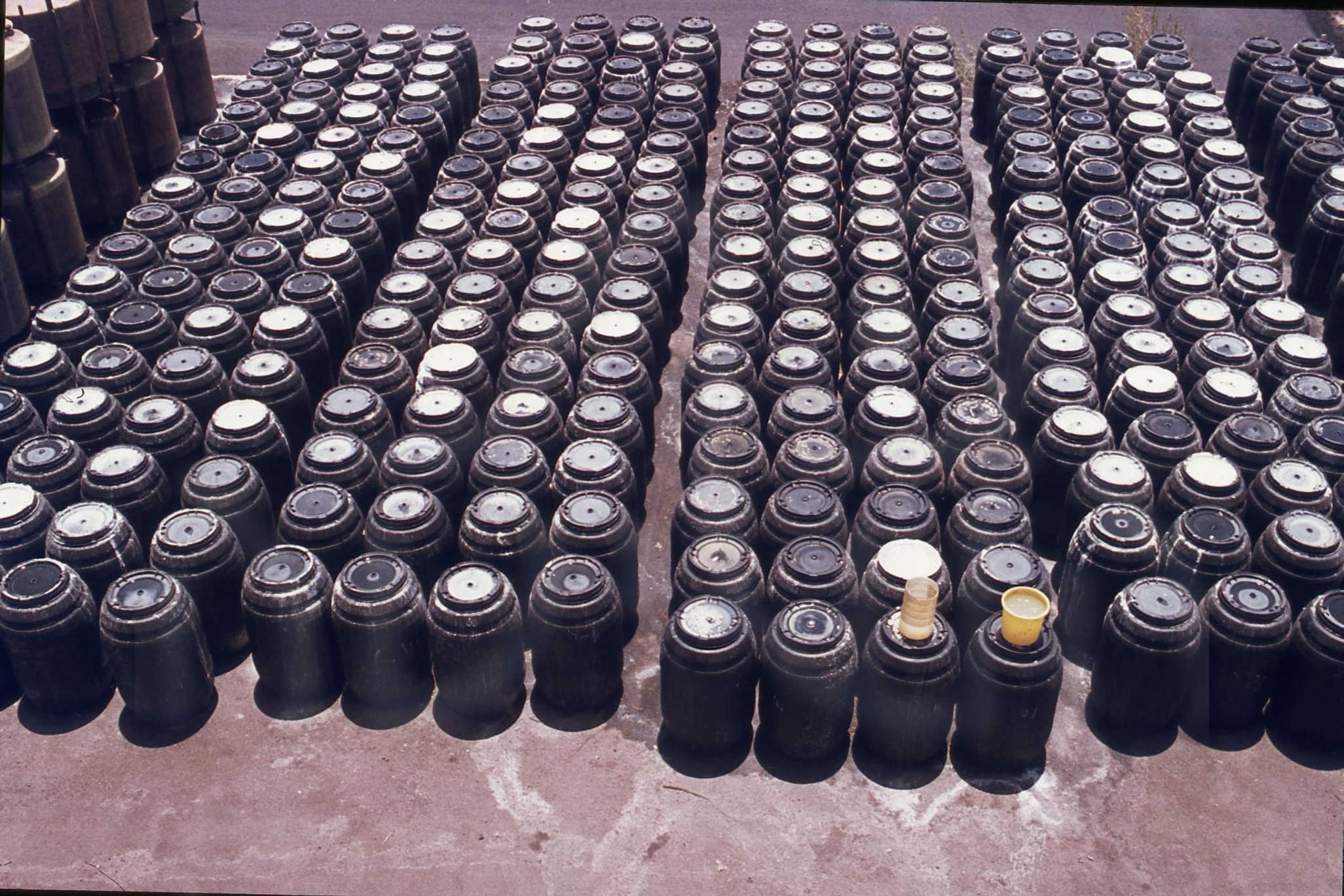 זיתיה.משטחי חביות הבצלצלים ליד המפעל . 1975