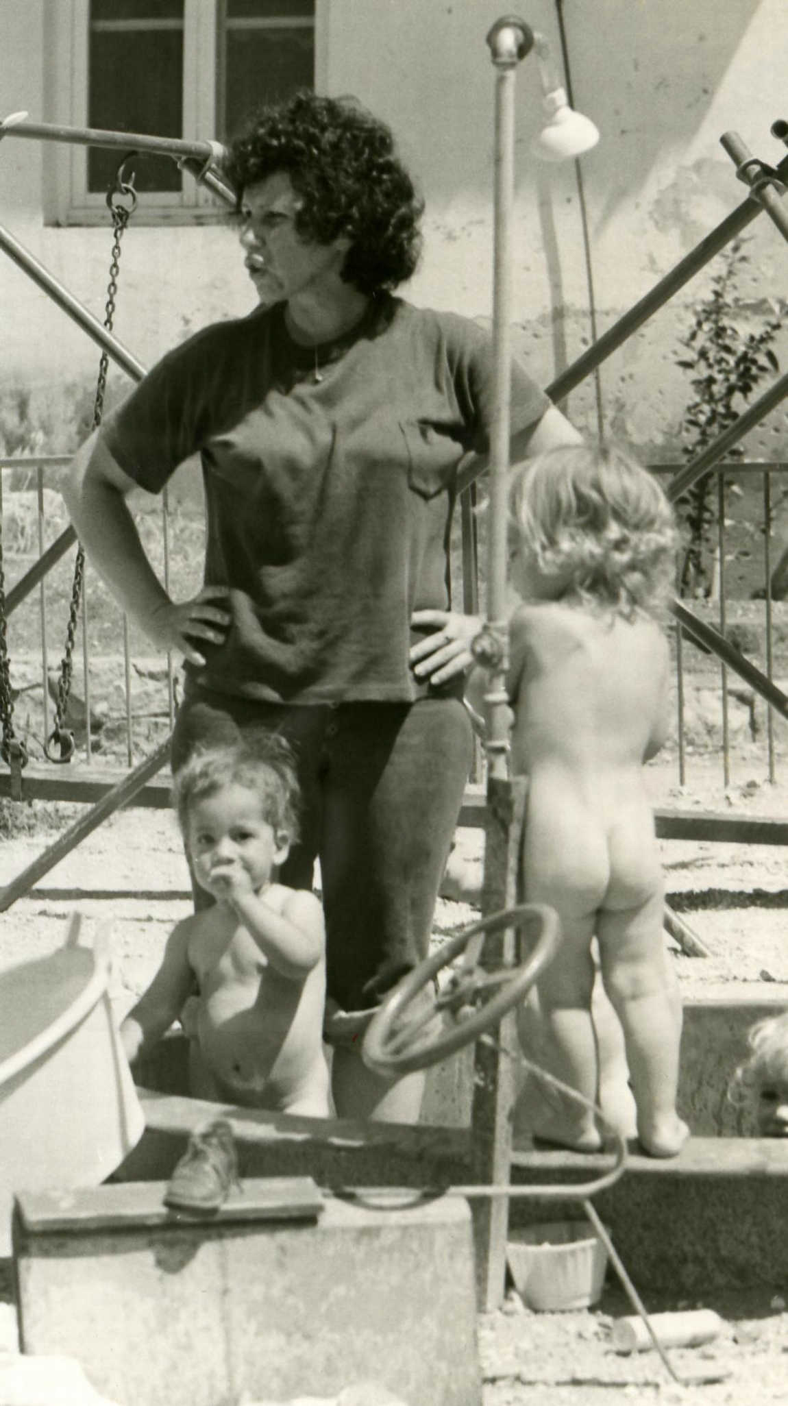 בחצר הפעוטון שולה אלבלק- חברת בית השטה- מטפלת באומנות וזמרת- בוגרת כיתת ‘להבה’ – 1976