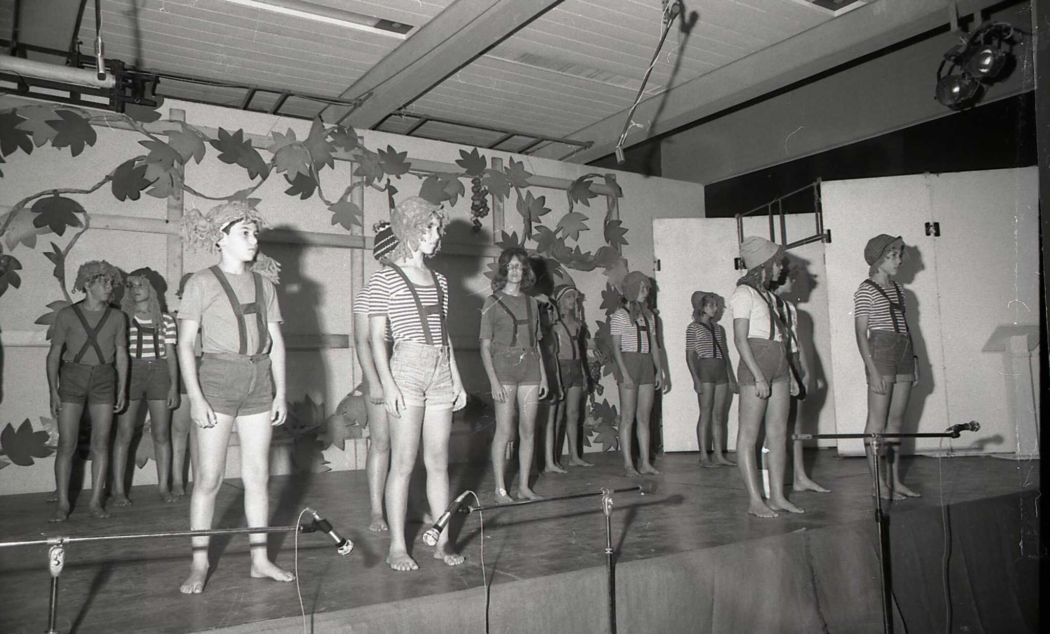 בר מצווה כיתת ‘גפן’ על הבמה בחדר האכל יולי 1977