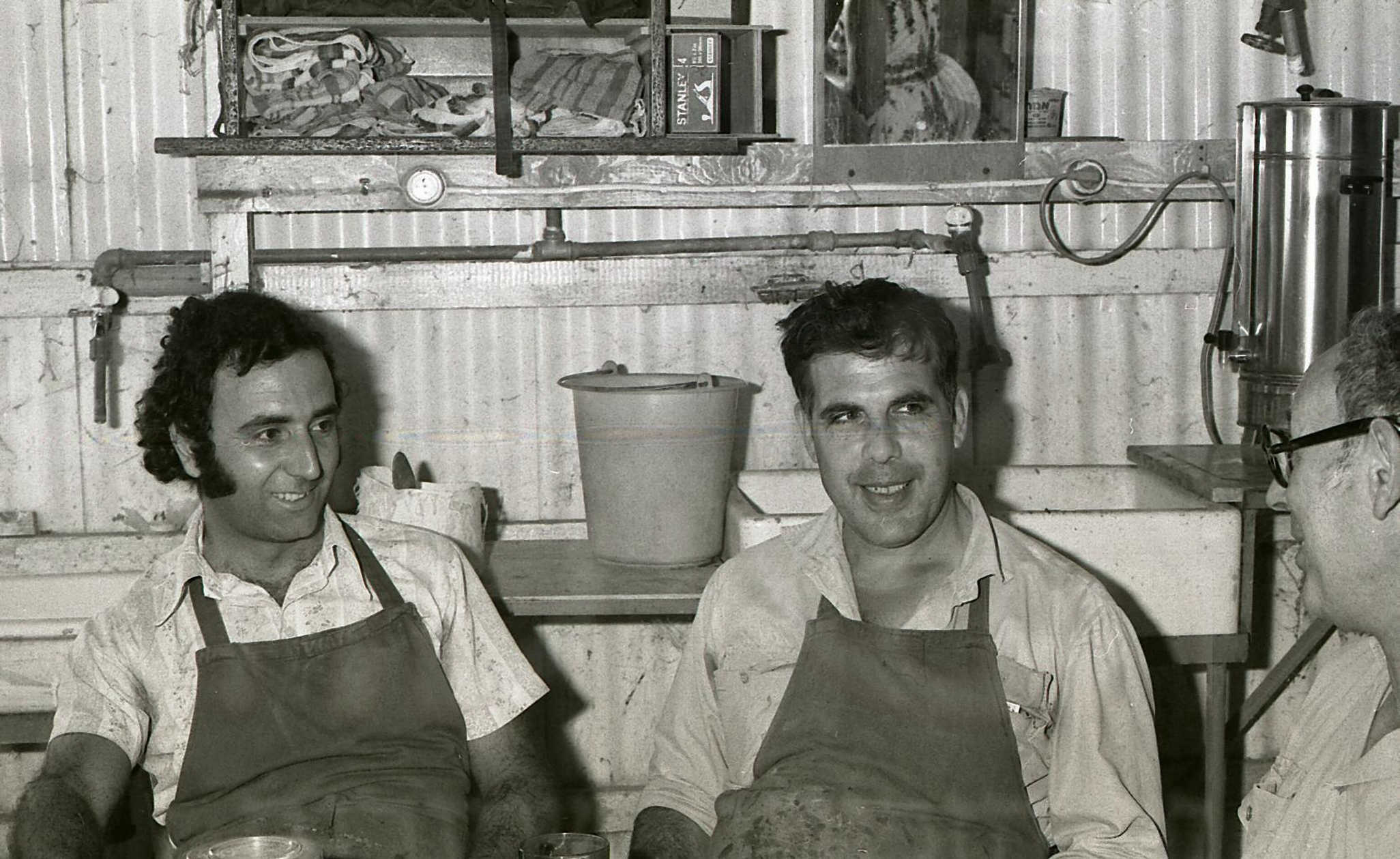 ספטמבר 1977.נתן מירון עם שני עובדי נגריה שכירים.1977