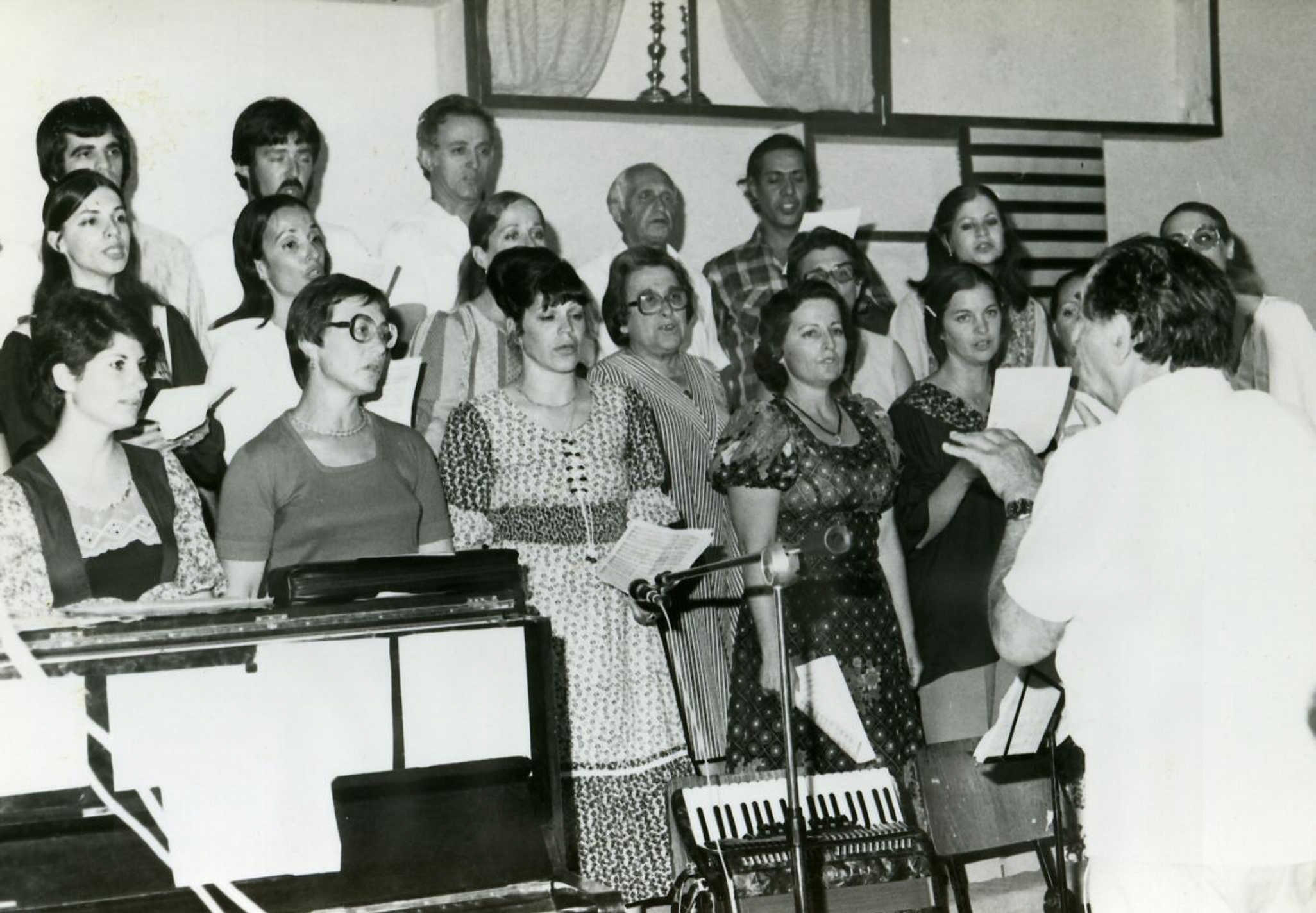 בערב יום כיפור- ארנסט מנצח על מקהלת בית השטה עומדים מימין : מיכל- יחזקאל דורי- שמעון דגני- חנוך אלבלק- שורה שניה ענת- חיה אורי- עדה מיכאלי נעמי קיזר- טלילה ירבעם- אירית מן לאה מרוז רותי בוכמן -1978