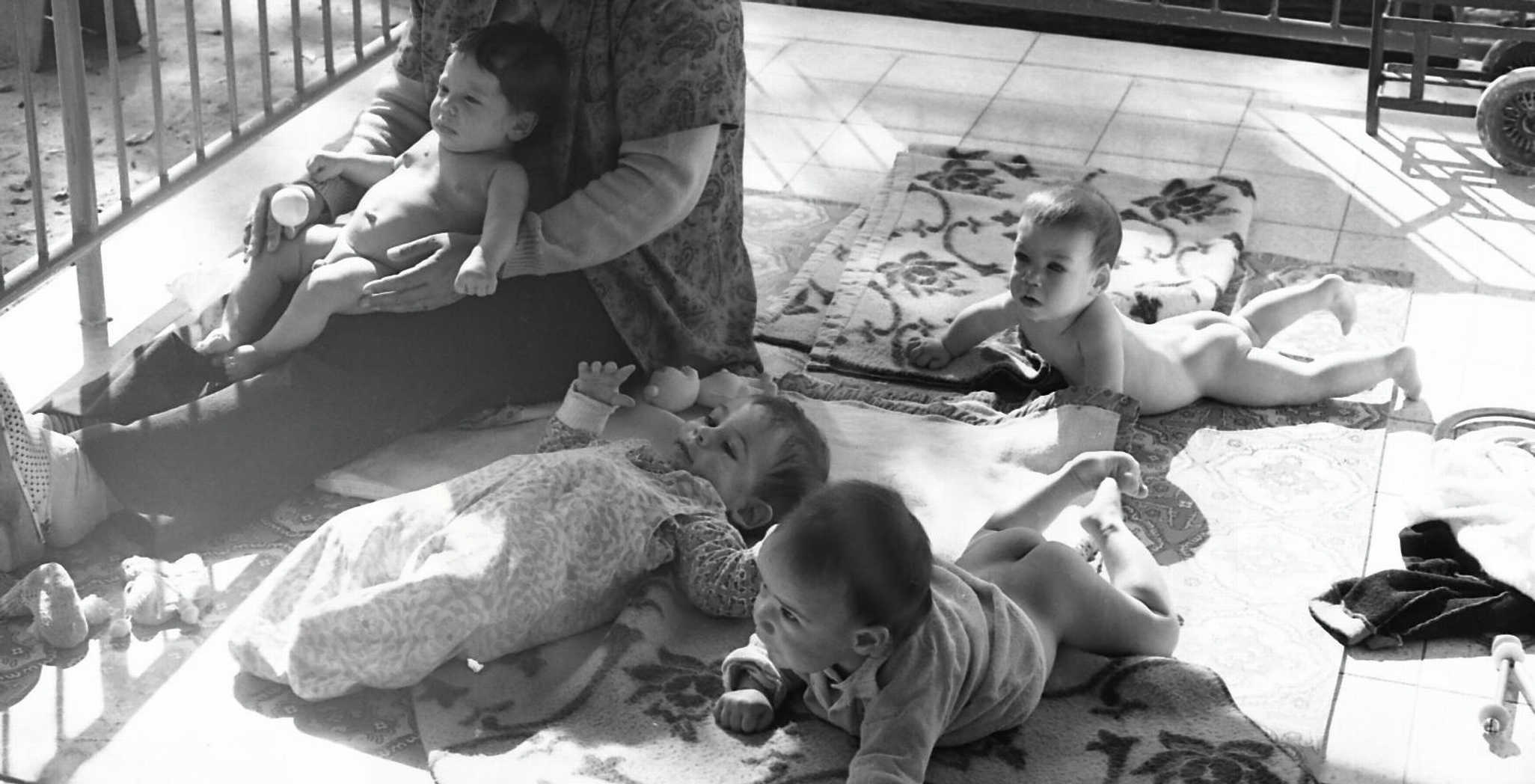 על מרפסת הפעוטון- תנוקות – 1978