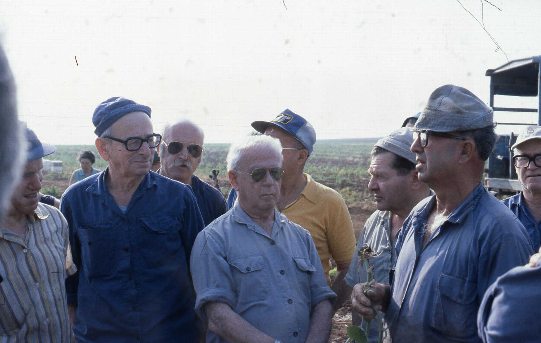 סיור עובדי הזיתיה בשדה מלפפונים לפני הקטיף- משה שריבמן- אברהם אילת- חיים רימון מיכאל ירבעם- אורי אולמן-יהודה הדר אברהם בונה- דוד שושני 1980