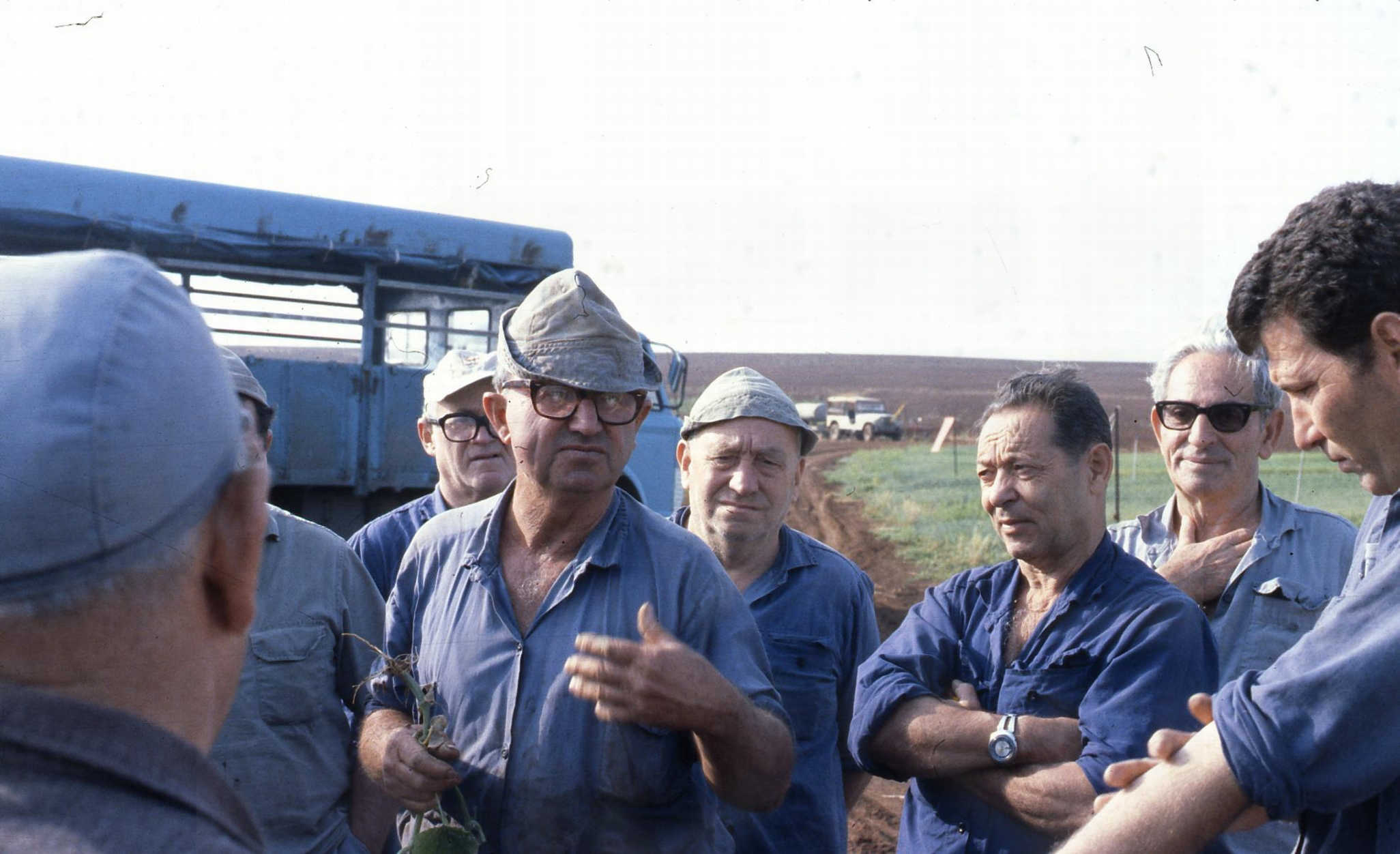סיור עובדי הזיתיה בשדה בצלצלים ירוק- ליטה שחורי- חנוך וולץ- יעקב וינשטיין- דוד שושני- אברהם בונה- משה פלד