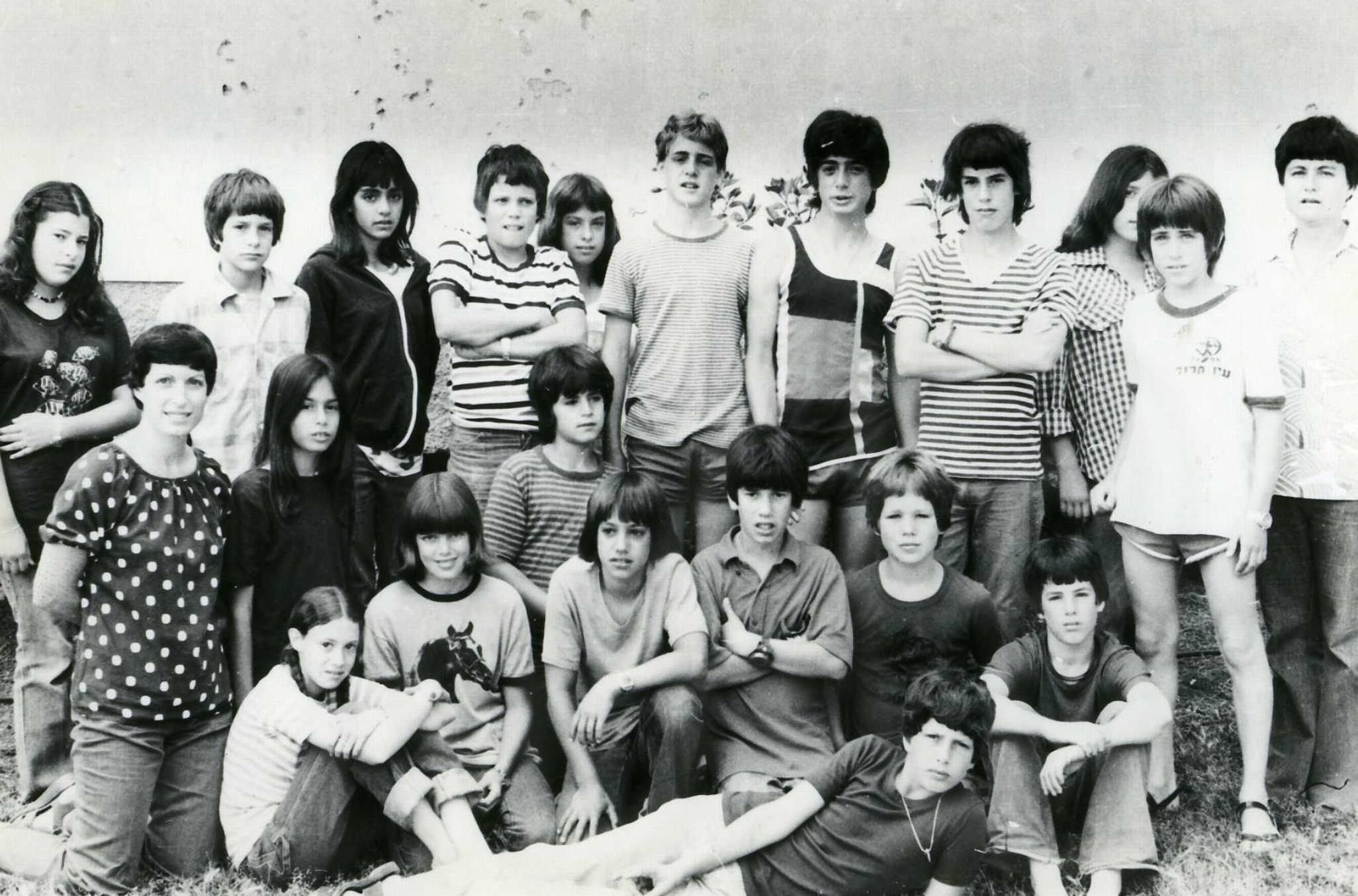 כיתת ‘נורית’ בשנת הבר מצווה מימין עומדים: שלומית שרון- יפתח שריג- נדב חוגים- גל אילת- הדר ירבעם-דורית מאירי- יורם לוי- רויטל לוי- ליאור מרוז- תמי מאס- יושבים מימין: גל בלכר- מנו- דרור הינמן- טל דורי- רועי יוניש- נורית אדר- סנונית ארגוב- טל ריניץ וניצה גופר המורה- לפנים רן רימון – 1980