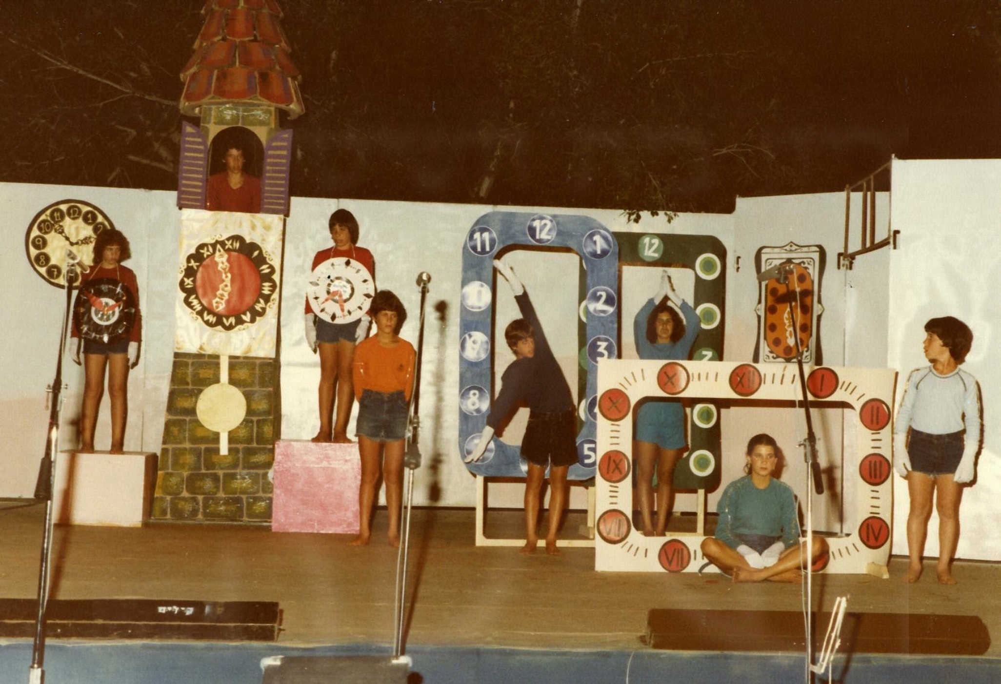 מסיבת בר מצוה של כיתת ‘רותם’ . עופר טל, אורית חן, אילה שגיא, נבו גבריאל, אלעד ארם, דותן סלע, מעיין היינמן – 1982