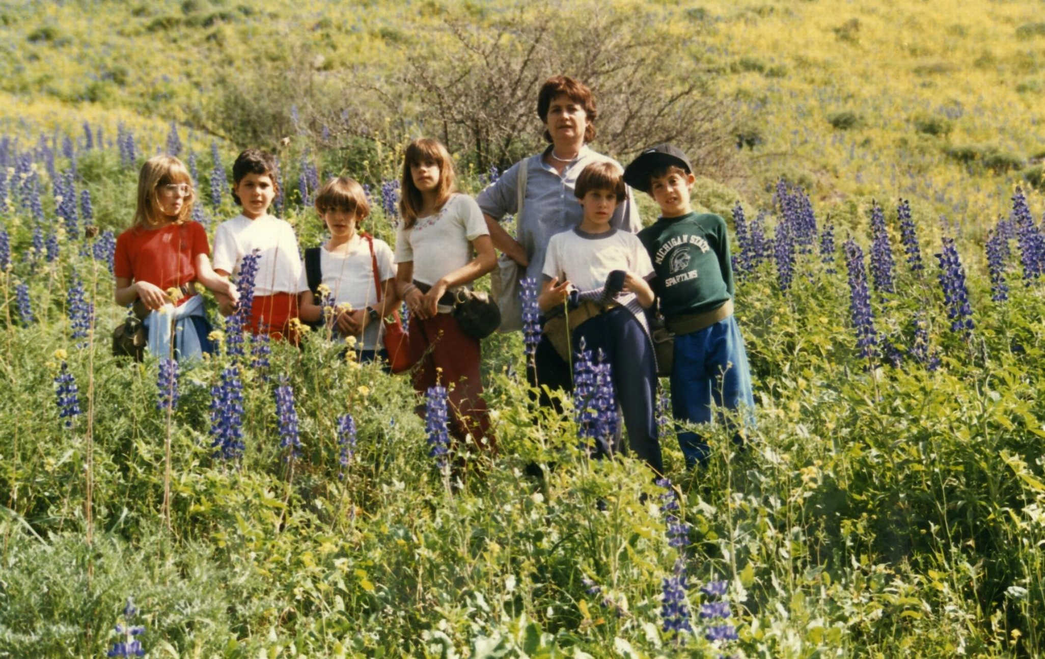 כיתת ‘שחר’ ו’גלעד’ -בטיול השכבה הצעירה- המטפלת שלומית שרון- שחף רימי- יערה יחיאלי- שני חן-מיטל מורן- מיכל בוטנסקי – 1987