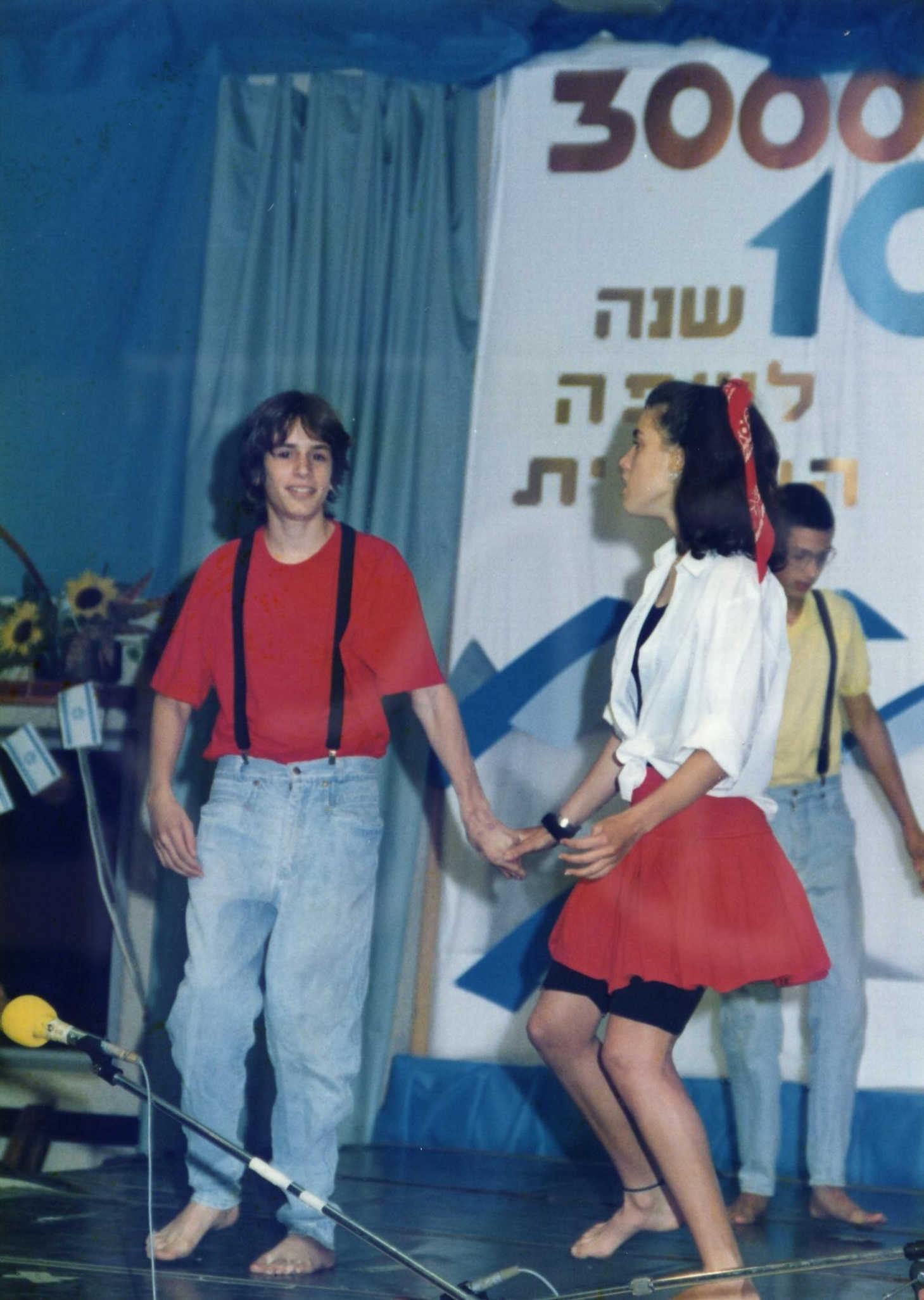 מסיבת עצמאות בבית השטה- בני כיתת ‘ערבה’ בהופעה- יואב ארנברג ונגה פלג. 1990