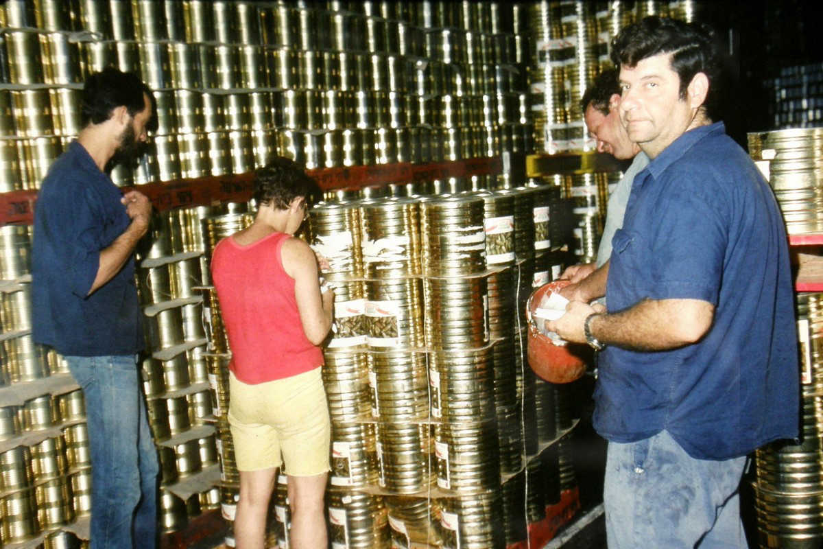 גיוסי חברים לזיתיה. הדבקת תויות על קופסאות 9 ליטר. צביקה קליחובסקי. 1979
