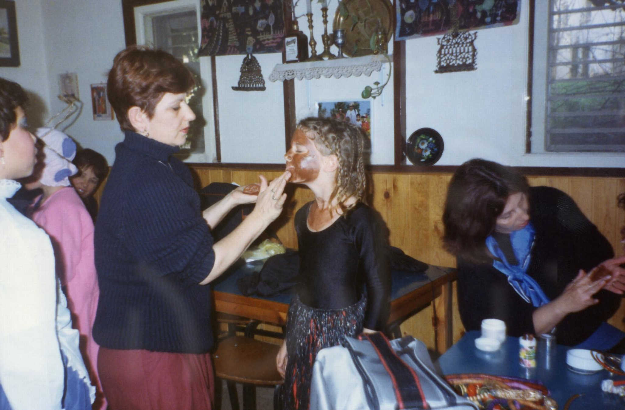 כיתת ‘אנפה’ בפורים: צפרירה וכסמן מאפרת. 1992