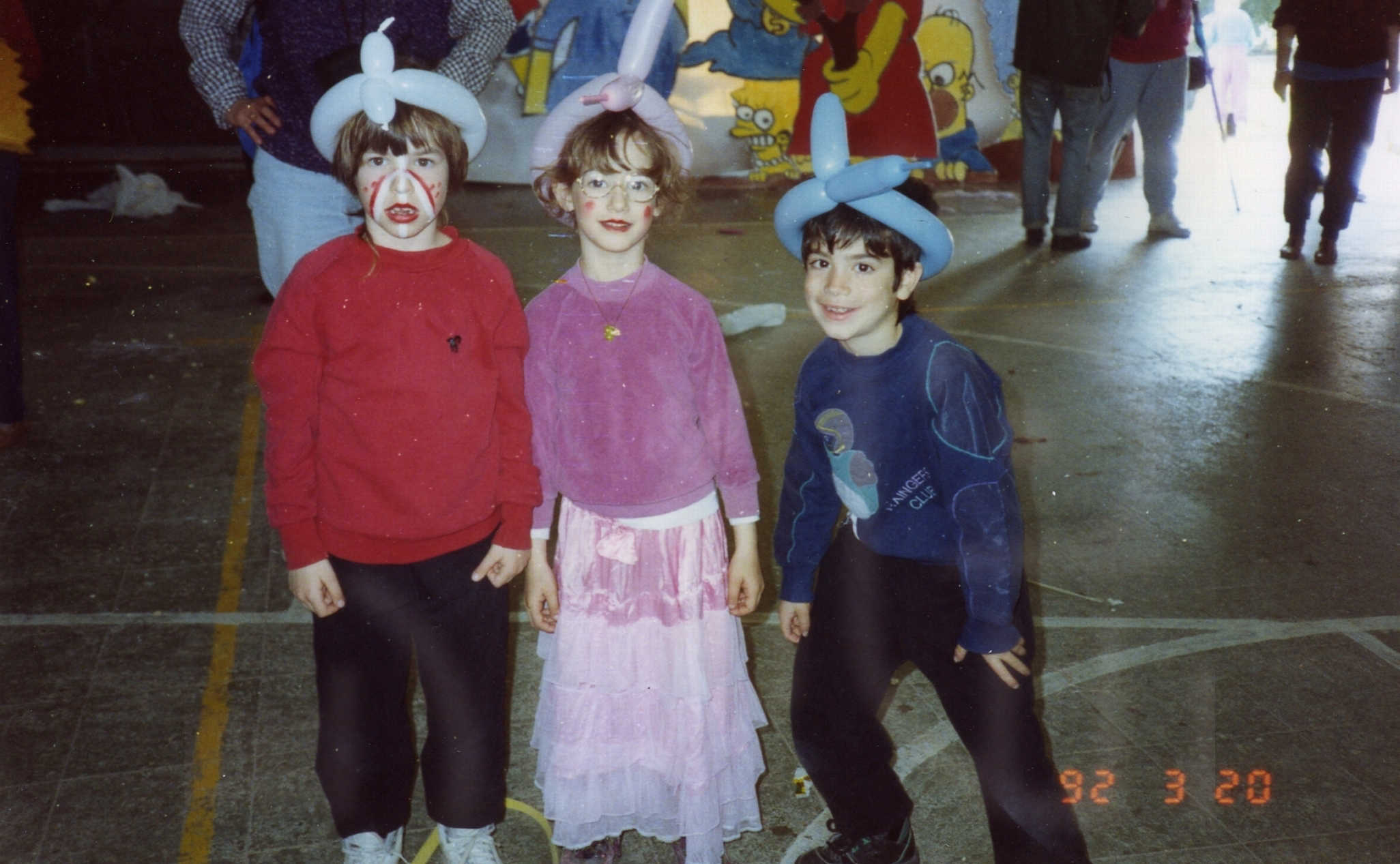 פורים בכיתת ‘תמר’: הדר ויצמן- עמיר גרזי.   1992