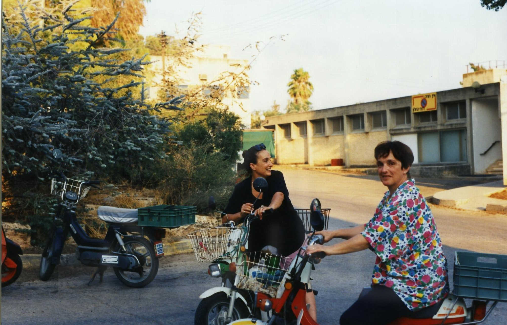 האחיות גורן- שולה שרגא ולאה מרוז בדרך- על הטוסטוסים- ליד המרכולת- 1998