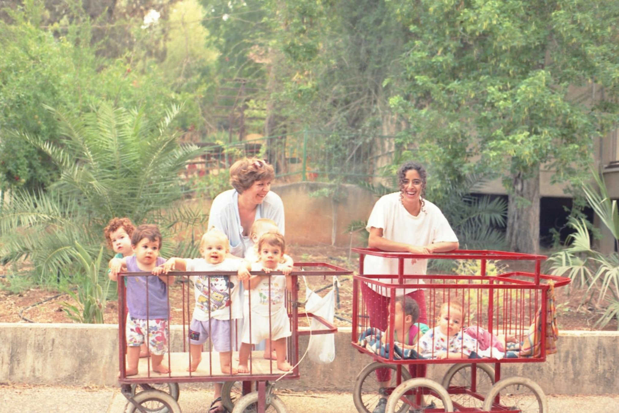 בירטה עם עגלול ותינוקות ליד חדר האכל-שולי ברוך – 1999