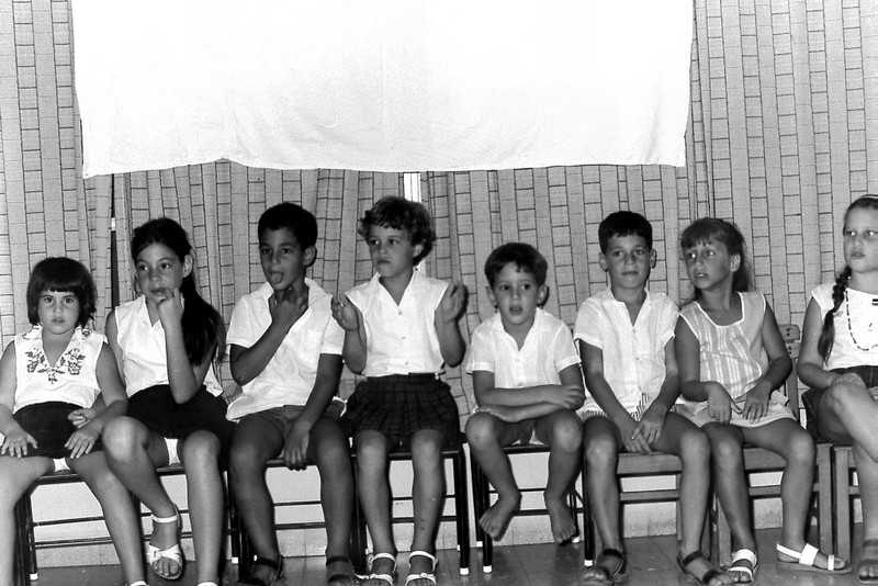 פעוטונים- בוגרי גן ה’ במסיבת סיום הגן-ירון וינקלר-בוסמת ירבעם- יובל בניאן- רונית גדיש-טלי גלבוע-גילה כרמל – 1968