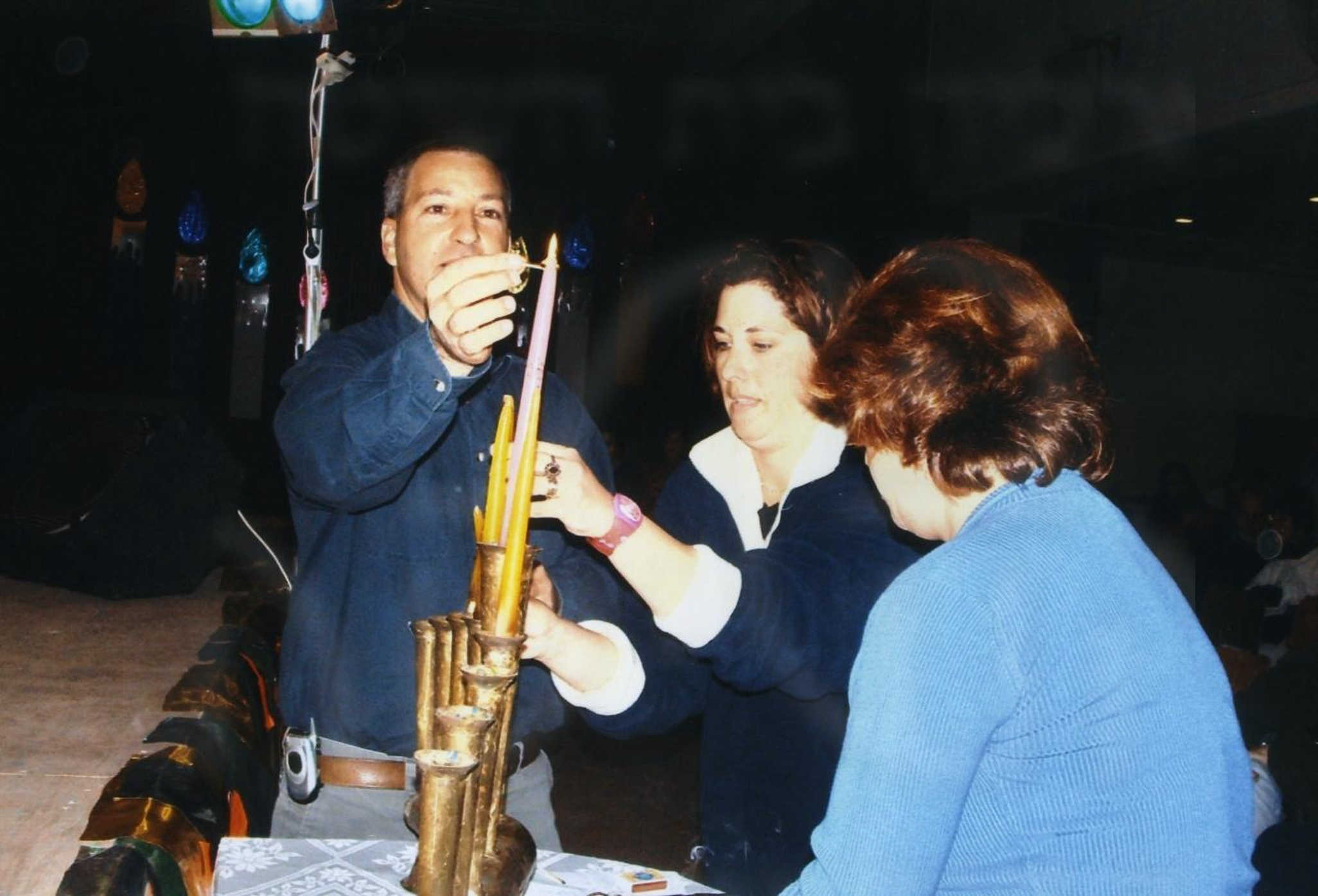 מסיבות חנוכה בחדר האכל- ארז שטיין מדליק חנוכיה-2004